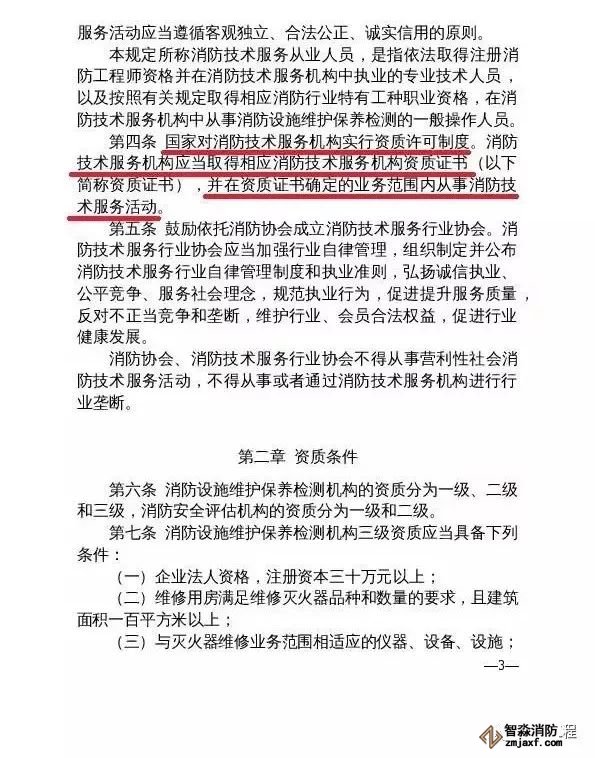 “ 取消消防設(shè)施維護保養(yǎng)檢測、消防安全評估機構(gòu)資質(zhì)許可制度,企業(yè)辦理營業(yè)執(zhí)照后即可開展經(jīng)營活動。”這是征求意見稿非常重要的一條。