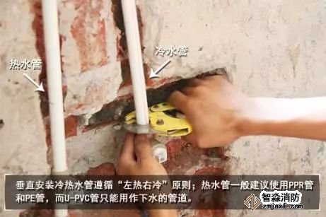 冷熱水管道的安裝遵循“上熱下冷,左熱右冷”的規(guī)則,上下安裝的水管還必須要注意兩管之間的平行。如果水管靠近煤氣管道,兩管距離必須大于50mm。入墻的冷熱水管與墻皮之間的距離須為1cm。