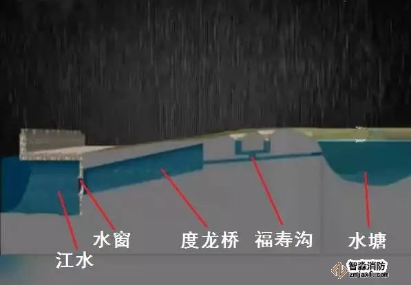 贛州古城防洪排澇系統(tǒng)分為4個(gè)部分:福壽溝、水塘、水窗、城墻