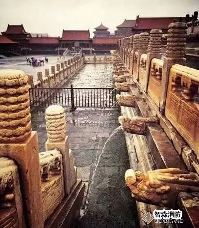 有人說是因?yàn)樗貏莞摺.?dāng)然,不可否認(rèn),地勢高在暴雨中確實(shí)是有優(yōu)勢的。但是如果缺乏精密的排水系統(tǒng),故宮排水也不會(huì)如此有秩序。