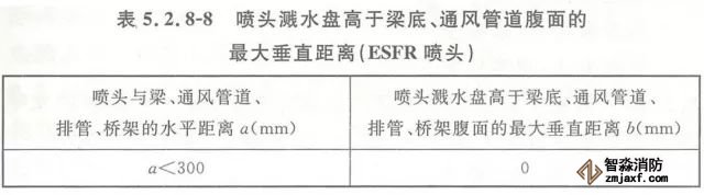 5.2.11 下垂式早期抑制快速響應(yīng)(ESFR)噴頭濺水盤與頂板的距離應(yīng)為150mm~360mm。直立式早期抑制快速響應(yīng)(ESFR)噴頭濺水盤與頂板的距離應(yīng)為100mm~150mm。