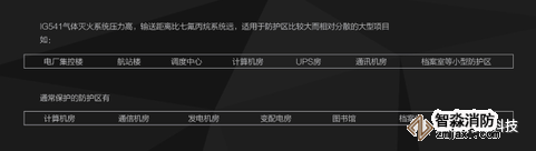 IG541氣體滅火系統(tǒng)壓力高,輸送距離比七氟丙烷系統(tǒng)遠,適用于防護區(qū)較大而分散的大型項目如: