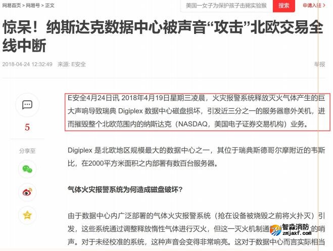 結(jié)論:本條是針對(duì)目前很多數(shù)據(jù)中心安裝氣體滅火系統(tǒng),經(jīng)過(guò)實(shí)驗(yàn)噴嘴噴放時(shí)的噪音達(dá)到100分貝以上時(shí),會(huì)造成服務(wù)器磁盤震裂而造成重大損失,在2018年4月份曾因氣體滅火噴放的巨大噪音導(dǎo)致瑞典數(shù)據(jù)中心大量磁盤損壞,有三分之一的服務(wù)器關(guān)機(jī),進(jìn)而造成北歐納斯達(dá)克業(yè)務(wù)停擺。