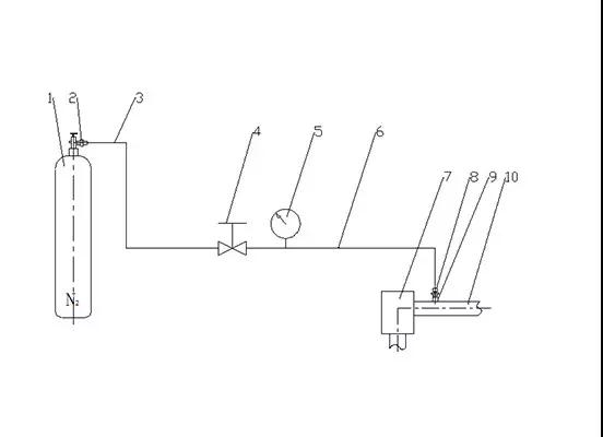 (6)為了減少試驗用氮氣瓶數量,降低試驗成本,可將試驗合格后管道內有壓力的氣體引到下一個需要試驗的防護區(qū)管道內。