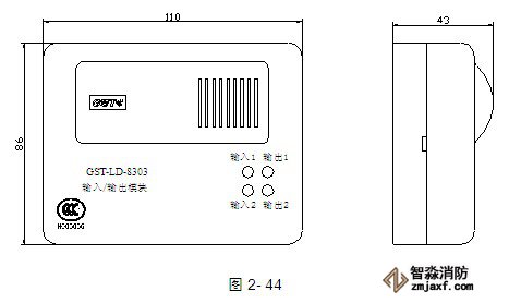 8303消防控制模塊的外形尺寸及結(jié)構(gòu)示意圖如圖2-44所示。
