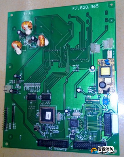 海灣GST500主機液晶顯示器無背光,拆下液晶顯示器的發(fā)光管,可以點亮,說明發(fā)光部分沒有問 題,問題出在開關(guān)板上,開關(guān)板上有一升壓模塊(圖中標(biāo)出紅色的部分),提供液晶顯示器背光所需的 高壓。